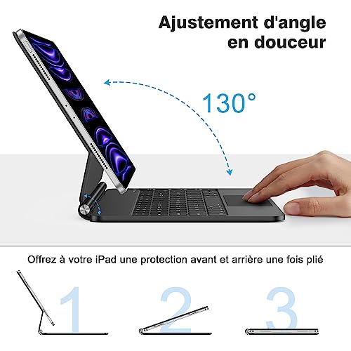 TECURS Custodia tastiera magnetica per iPad Air 11" 2024 (M2)/ iPad Air 5 2022/ Pro 11" (4/3/2/1 Gen) Air 4 2020 Multi-Touch,Magic Keyboard AZERTY Tastiera Bluetooth iPad Wireless con custodia, Nero