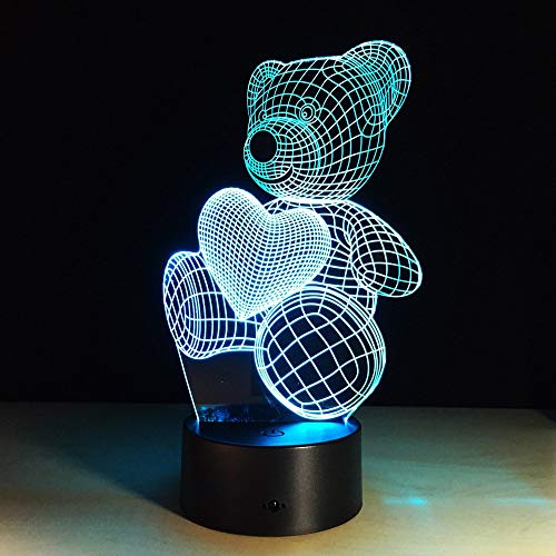 Teddy Bear Night Lights Regali per bambini Donne Mom Girls Smart Touch & Remote Control 7 Color 3D Illusion Lampada bambini luce animali Led Lampade da tavolo Bear Heart