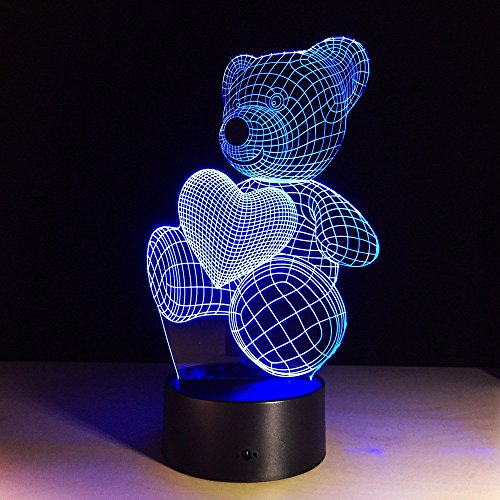 ♥ 3D BEAR EFFETTO VISIVO: Bear 3D led light è una lampada da tavolo atmosfera divertente novità. Incidiamo molta grafica su una lastra acrilica 2D piana e piatta, attraverso la quale vedrete un orso visivo 3D dovuto all'illusione ottica, una visione 3D più forte specialmente al buio o scattare una foto. L'effetto 3D creativo rende la luce notturna un compleanno perfetto o un regalo di Natale per bambini, amici e famiglie.