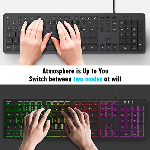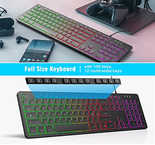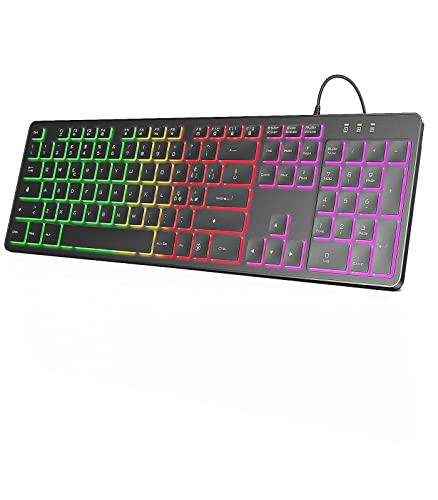 【RGB Computer Tastiera 】I colori dell'arcobaleno migliorano l'atmosfera di lavoro e offrono un'eccellente esperienza di digitazione visiva. i tasti sono visibili al buio e puoi digitare con precisione. il design della luminosità può essere facilmente regolato con i seguenti metodi (FN + PgDn ↓ FN + PgUp ↑)