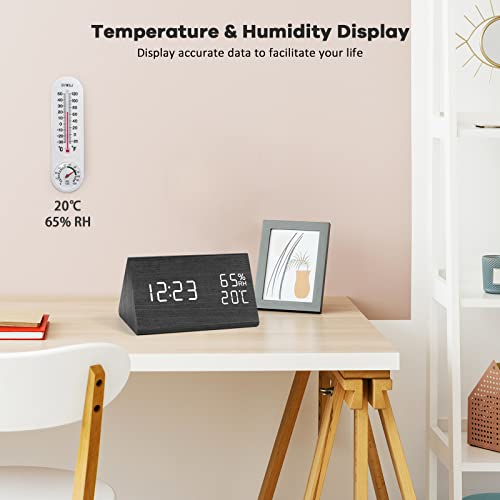Tedsrewa 2 pacchi Sveglia digitale a LED digitale, in legno, con controllo vocale, data, temperatura e umidità, per comodino, camera da letto, notte bambini e ufficio, colore nero