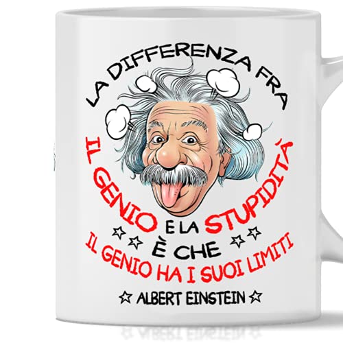 TeeDesign Tazze divertenti EINSTEIN - Mug Citazione Albert Einstein: La differenza fra il genio e la stupidità è che il genio è limitato