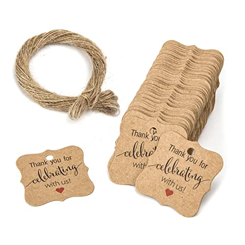 ❤ Tag "Grazie" - questi tag sono stampati con "Grazie per aver festeggiato con noi", che è molto adatto come tag regalo di nozze