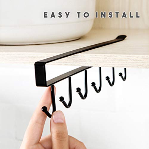 Teekit Under-Cabinet Hanger Rack with 6 Hooks Kitchen Cupboard Storage Shelf Hook,Bianca