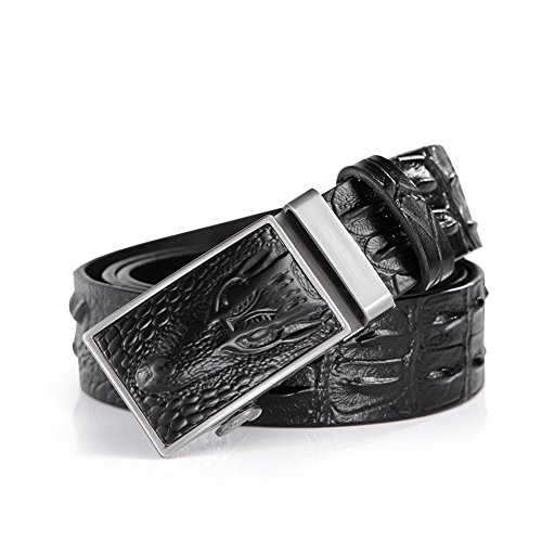 Teemzone Coccodrillo Cintura Pelle Uomo Nero Marrone 38mm Stile di affari Automatica Fibbia Elegante (Lunghezza della pelle 125cm Girovita 108-118cm, Nero)