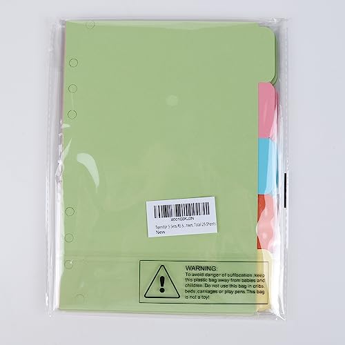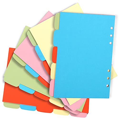 Teenitor - Set di 5 divisori in formato A5, colorati a 6 fori, divisori per schedari, divisori a schede, per inserti, agenda per quaderni, arancione, rosa, giallo, blu, verde, totale 25 fogli