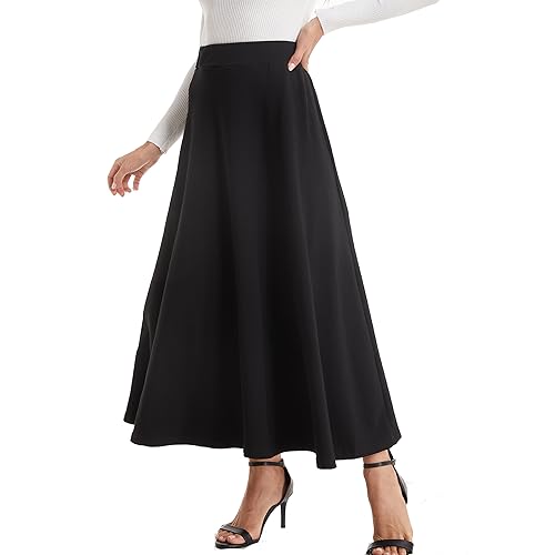 TEERFU Donna Gonna Elastica Lunga Vestito A-Lino Cotone Vintage Maxi Plissettata retrò Gonna, Colore Solido