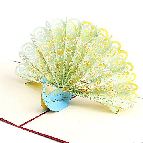 Teerfu 5PCS pavone 3D Pop Up biglietti di auguri, taglio laser a mano Kirigami Papercraft carta regalo per compleanno, festa della mamma, ringraziamento, matrimonio, anniversario, Natale, ringraziamento, Green, 15*15cm