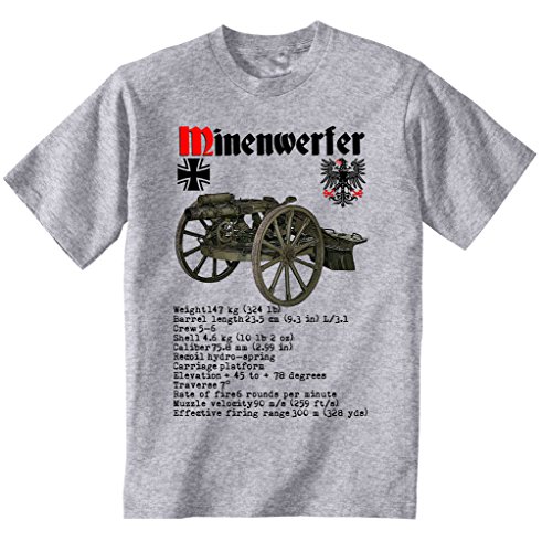 Teesquare1st MINENWERFER Germany WWII Mortar Tshirt di Cotone da Uomo Grigio Size XXLarge