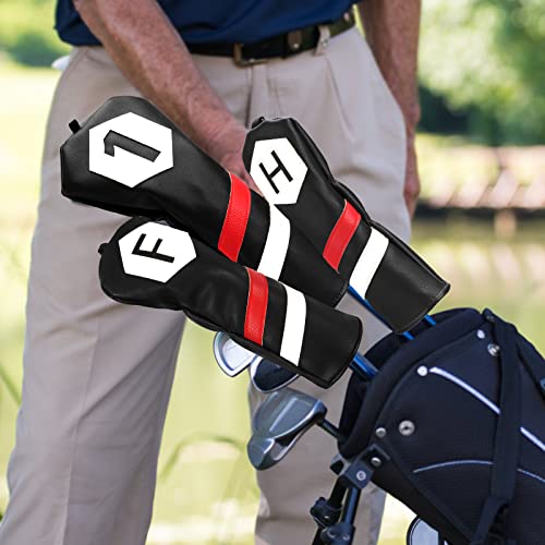 Big Teeth Golf Club Head copre Set di 3 confezioni 1FH DR FW UT per Driver Fairway Hybrid con No.Tag Balck Bianco Rosso PU Pelle