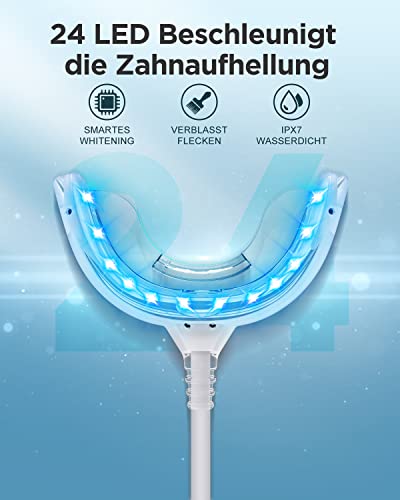 【Nessun danno alle gengive】 Con 24 potenti LED emette una luce blu ad alta intensità, porta componenti di sbiancamento attivi in tutte le fessure dentali e accelera lo sbiancamento dei denti. Nessun dolore, nessun danno e molto più sicuro.