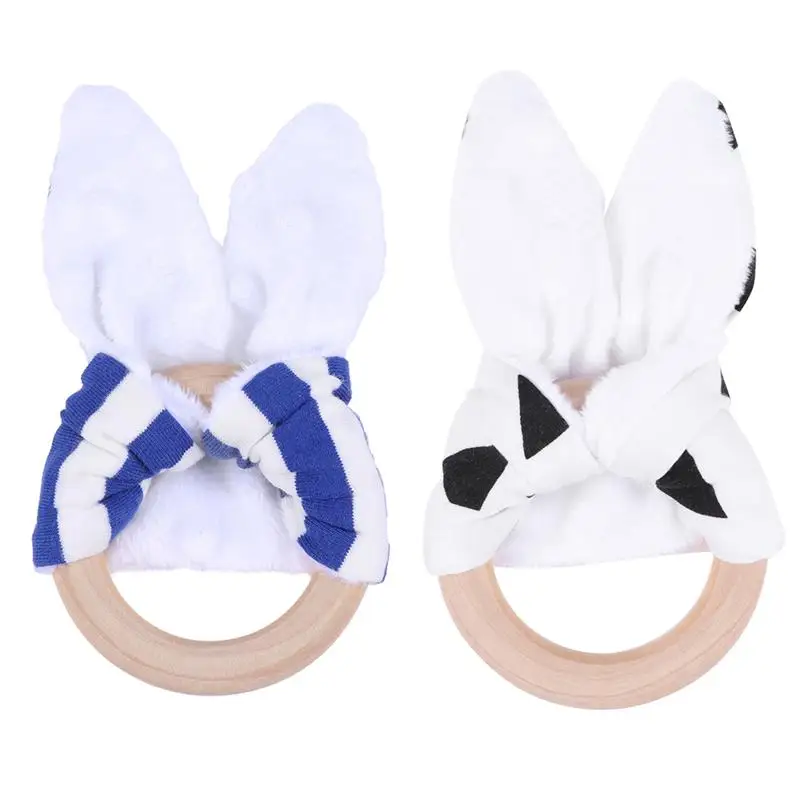 2Pcs Baby Teethers Wooden Teething Rings Baby Teething Toys Lovely Baby Teething Toys Teether Rings For Infant (Assorted Color)