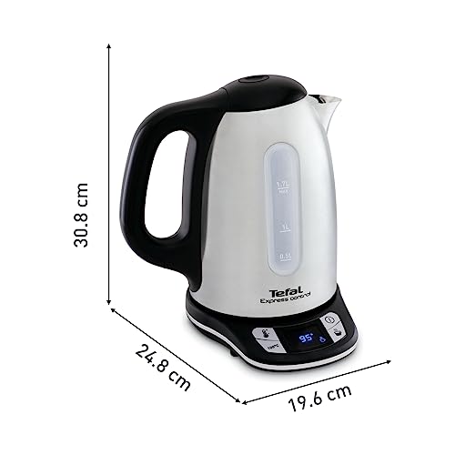 Tefal Bollitore elettrico senza fili in acciaio inossidabile, 1,7 L, 2400 W, 7 temperature regolabili da 60 a 100°, schermo digitale, Keep warm 60 min, Express Control KI240D10