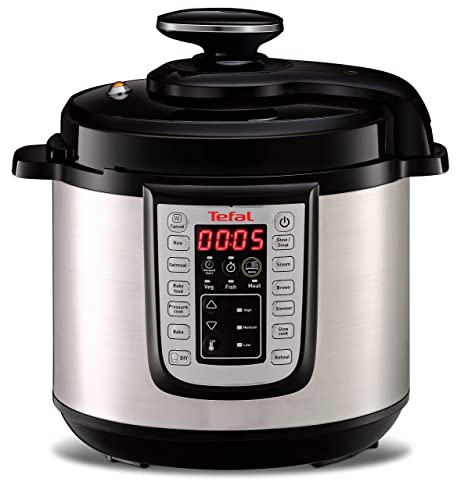 Tefal Fast & Delicious Multicooker - Pentola elettrica a pressione, 1200 Watt, 25 programmi automatici, 6 litri, temperatura e tempo regolabili, con ricettario, in acciaio inox/nero