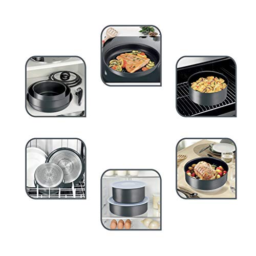 Tefal Ingenio Performance - Batteria da cucina, 10 pezzi, a induzione, 3 padelle, 2 coperchi, 2 coperchi ermetici, 2 accessori benvenuti (pennello e spatola a Inghil), 1 manico rimovibile L6859102
