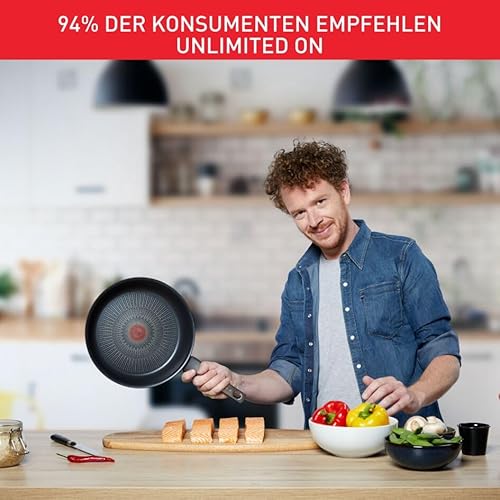 Tefal Unlimited On G25904 Padella da 24 cm con rivestimento antiaderente in titanio antigraffio e segnale termico, senza PFOA, adatta per tutti i piani cottura, anche per fornelli a induzione, nero