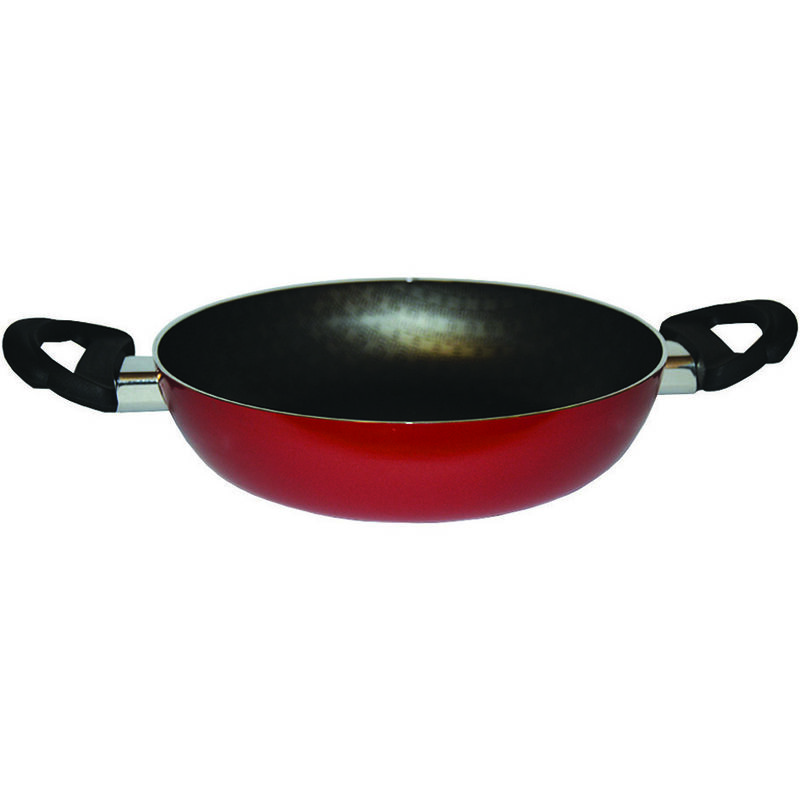 Corpo alluminio fondo rettificato spessore mm 2,7 - rivestimento interno antiaderente doppio strato - esterno colore rosso - manici bachelite saldato