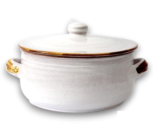 Colì, Tegame in Terracotta con Coperchio, Tegame Artigianale, Tegame Bianco Terre Antiche, Diametro 24 cm