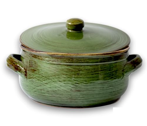 Colì, Tegame in Terracotta con Coperchio, Tegame Artigianale, Tegame Verde Terre Antiche, Diametro 24 cm