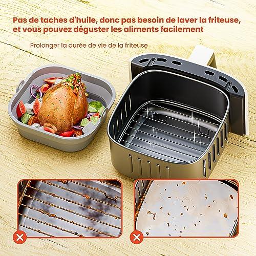 Teglia per Friggitrice ad Aria in Silicone (21cm), LaFleurs Pieghevole Riutilizzabile Silicone Pot, Contenitori Accessori Friggitrice ad Aria, Stampi Cestino per Friggitrice ad Aria