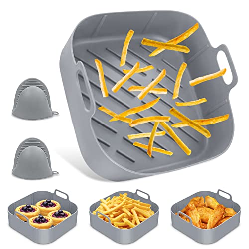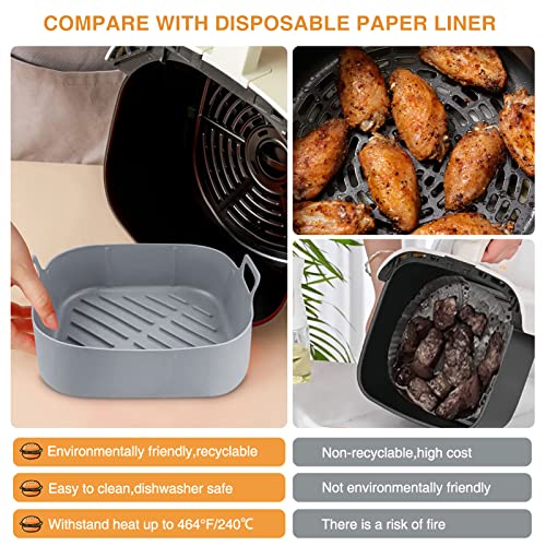 Teglia in Silicone per Friggitrice ad Aria, 20 cm Cestino per Friggitrice ad Aria in Silicone Cestello quadrato in silicone Reusable Silicone Pot per Friggitrice ad Aria (3)