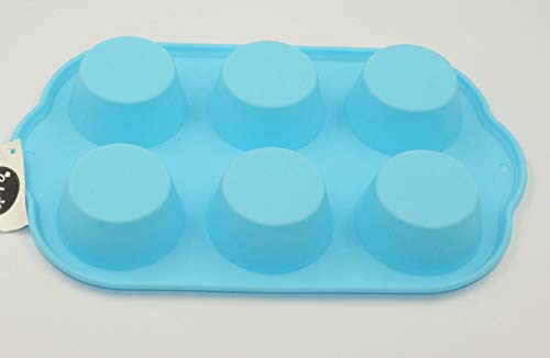 Teglia con 6 stampi grandi in silicone per muffin e panini dolci, teglia in latta antiaderente, utilizzabile come stampi da forno per budini Blue
