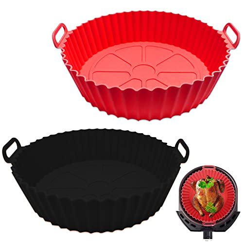 2 Teglie per Friggitrice ad Aria Grande,Accessori per Friggitrice ad Aria in Silicone Nuovo,Teglie Friggitrice ad Aria, Adatti per Friggitrici adAria, Forni Microonde, Stampi per Torte