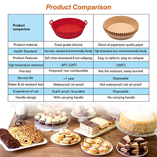 Materiale resistente all'abrasione: materiale selezionato di alta qualità in silicone addensato, resistente ai graffi, all'abrasione, agli strappi e allo sporco,teglia per friggitrice ad aria adatto a forni a microonde, vaporiere, forni e altre pentole