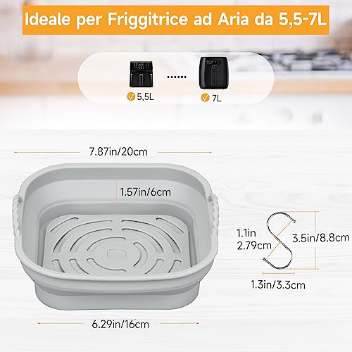 Ampie Applicazioni - Diametro di 20cm. Adatto alla maggior parte delle friggitrici ad aria quadrate, come COSORI 5.5L, Cecotec, Princess, Ninja, Philips. Può essere utilizzato in forno, microonde.