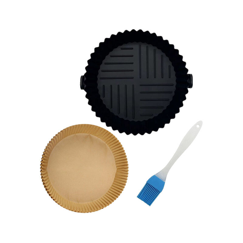 Descrizione:Il nostro strumento per la cottura della friggitrice ad aria può essere messo nella friggitrice ad aria per contenere bene il cibo e prevenire le perdite di olio. È adatto per friggitrici ad aria, forni, forni a microonde e altri utensili da cucina.Specifica:Nome del prodotto: Kit teglia per friggitrice ad ariaDimensioni teglia in Silicone: circa 18.5*15.5*4.5cm/7.3*6.1 * 1.8inDimensioni del vassoio del grasso: circa 20*16*4.5cm/7.9*6.3 * 1.8inDimensione della spazzola dell'olio: circa 16.6*3cm/6.5 * 1.2inUso del prodotto: adatto per friggitrici ad aria, forni, forni a microonde, ecc.Confezione A: vassoio di carta oleata da 50 pezzi + 1 teglia da forno in silicone + 1 pennello per olio (il colore del pennello per olio è casuale), il peso è di circa 220gConfezione B: vassoio di carta oleata da 100 pezzi + 1 teglia da forno in silicone + 1 pennello per olio (il colore della spazzola per olio è casuale), pesa circa 300gElenco dei pacchetti:Set di padelle per friggitrice ad