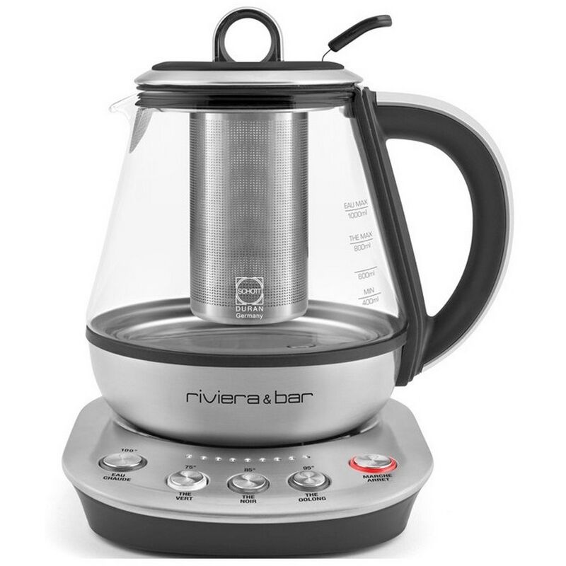 Fujian Riviere & Bar BTH440 Bollitore da tè 2 in 1 ideale per piccole preparazioni. Design compatto e dimensioni ridotte.Potenza ridotta per un perfetto controllo della temperatura, anche per piccoli volumi d'acqua. 3 preparazioni con temperatura e tempo di infusione preimpostati: Tè verde / Tè nero / Tè Oolong. Utilizzabile Tè verde, tè oolong, tè nero, sfuso o in bustine. Conservazione automatica della temperatura quando si posiziona il cestino del tè. Pratica, la barra luminosa ti indica in ogni momento lo stato di avanzamento del ciclo di infusione e mantenimento in caldo. Possibilità di accorciare o estendere manualmente il tempo di infusione per adattare l'intensità del tè alle proprie preferenze. Può essere utilizzato in un bollitore a temperatura variabile: 75, 85, 95°C. Funzione speciale Ebollizione 100°C. Segnali acustici e indicatori per seguire ogni fase: Riscaldamento / Infusione / Mantenimento in caldo. Brocca in vetro per la massima visibilità. Facile da installare il