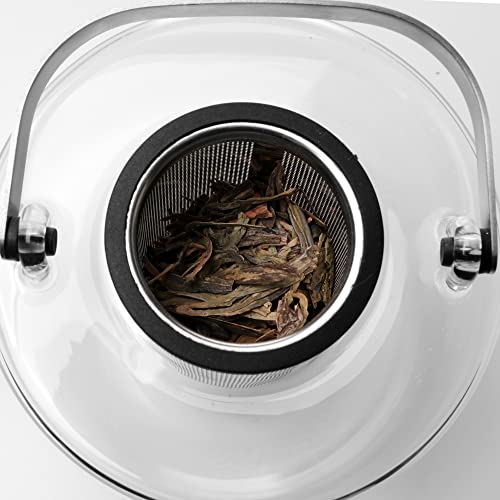 Teiera di vetro con colino senza gocciolamento: teiera di vetro con colino per tè, la maniglia non si scalda, adatta per tè sciolto, 1,3 L