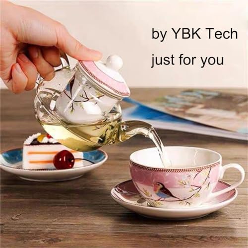YBK Tech Teiera in vetro con infusore in porcellana, set di tazze e piattino, teiera e tazza da tè per una (rosa)