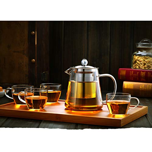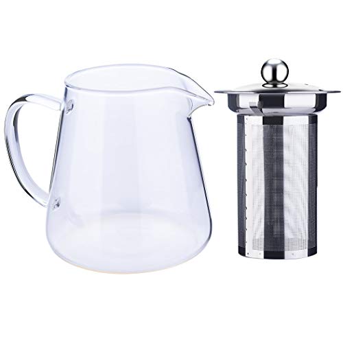 Teiera per uso familiare in vetro ultra trasparente da 750 ml con infusore in acciaio inossidabile. Include filtro in micro rete in acciaio inox per tè sfusi o tè in fiore, perfetta per 2-3 persone.