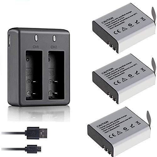 Tekcam - 3 batterie ricaricabili da 1350 mAh e caricabatterie doppio per Action Camera, compatibili con fotocamere Akaso EK7000 - Brave 4 / Crosstour / Campark ACT74 / Dbpower EX5000 / Fitfort / Victure / Apeman / Eken 4k