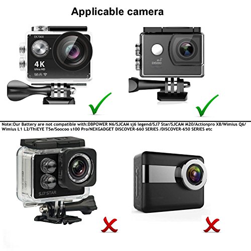 Nota: la nostra batteria non è compatibile con le sj6000 / sj6 legend / SJ7000 / SJ7 Star / SJ M10+ / Actionpro X8 / Wimius Q6 / Wimius L1 L2 L3 / ThiEYE T5e / Soocoo s100 Pro / Dbpower N6 ecc.