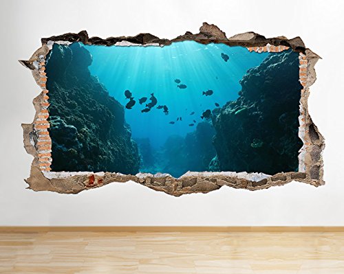 Tekkdesigns S587 Fish Rocks Underwater Ocean Smashed Adesivo 3D Art Stickers Vinyl Room (Medium (52 x 30 cm))