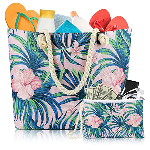 Teklemon Grande Borsa da Spiaggia, Borse Tote da donna, Borsone da Viaggio, Borse da Piscina con Comodi Manici in Corda e Chiusura con Cerniera (001)