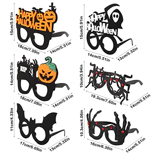 Teklemon Occhiali di Halloween, 6 Paia Occhiali per Feste di Halloween, Scheletro Pipistrello Zucca Mietitore Ragno Divertente Festa a Tema di Halloween Vestire Occhiali, Articoli per Feste