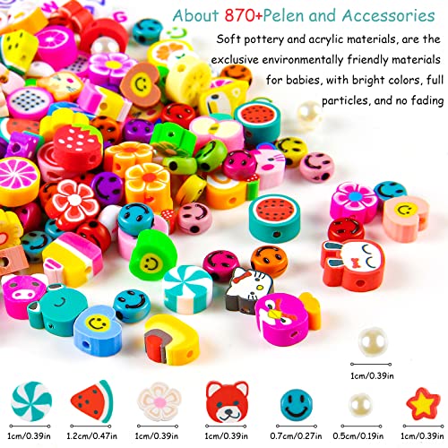 Teklemon 870 Pezzi perline di argilla polimerica con Smiley, Lettere, Frutta, Animali Beads, Kit per Gioielli Fai Da Te, per Braccialetti, per collana, orecchini
