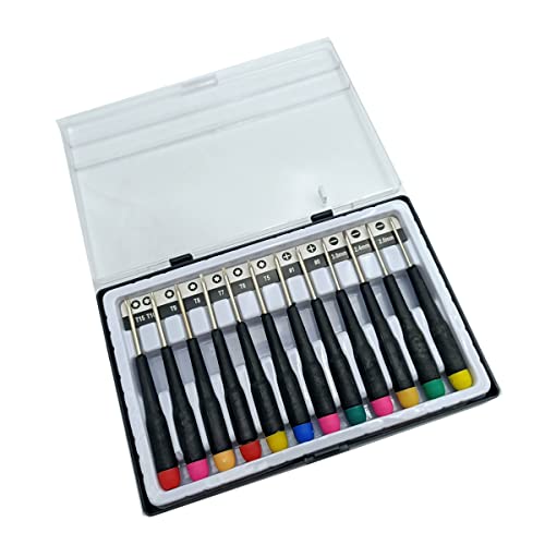 TEKLiNe 12 Mini Cacciaviti Precisione Taglio Croce Torx Punta CR-V Acciaio Temperato, Mini Computer Elettronica Occhiali Utensileria Fai da Te Riparazione Minuteria Vite, Multicolore