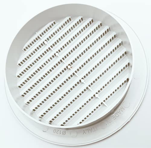 TekLINE 2 Griglie Ventilazione Aerazione Plastica 100mm Incasso Tonda Rotonda Areazione Protezione Insetti Sistema Aria Casa Colore Bianco, 2 pezzi da 10cm