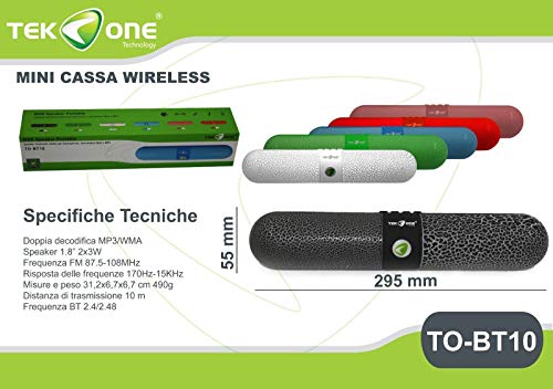 TekOne Mini Speaker Portatile Bluetooth adatto per Smartphone, riproduttori Mp3 e Mp4