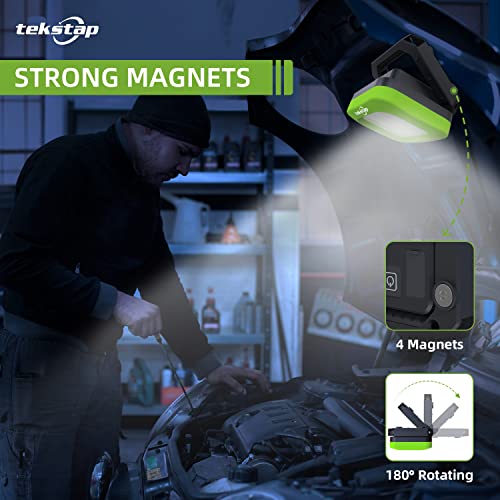 Tekstap USB Ricaricabile LED Luce da Lavoro,Portatile Magnetico Super Luminoso IP 65 Impermeabile 1000LM 6500K COB LED Faretto Verde 2