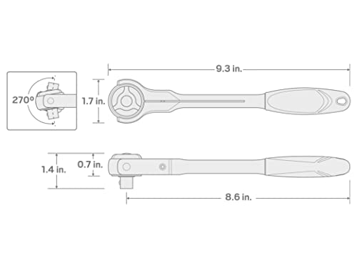 TEKTON, Chiave a cricchetto con testa snodata, 23 cm, 3/8", 1491
