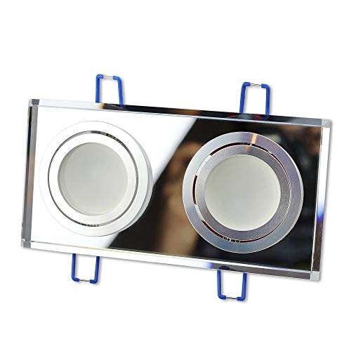 Telaio di montaggio in vetro trasparente - specchiato angolare doppio per GU10 e MR16 - telaio girevole foro di foratura 155-70mm - per lampadine a LED e alogene - faretto