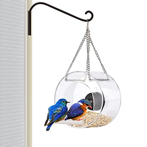 Telecamera per casetta per uccelli | Mangiatoia per uccelli con finestra trasparente con ventose - Mangiatoia per videocamera per uccelli con catena per appendere all'aperto, videocamera HD Sysdisen