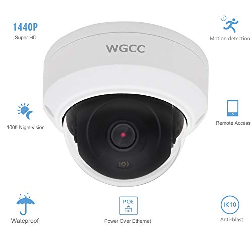 WGCC Telecamera da Esterno di Sicurezza Poe da 4MP 2.8MM Dome Super HD Sorveglianza Impermeabile con Rilevamento Movimento Allarme Intelligente