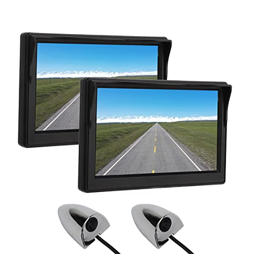 Mini Telecamera Laterale per Auto, Telecamera Laterale per Portiera Auto con Monitor LCD TFT da 5 Pollici per Rimorchio Bus Camion Camper, DC12V 24V, IP67 Impermeabile,