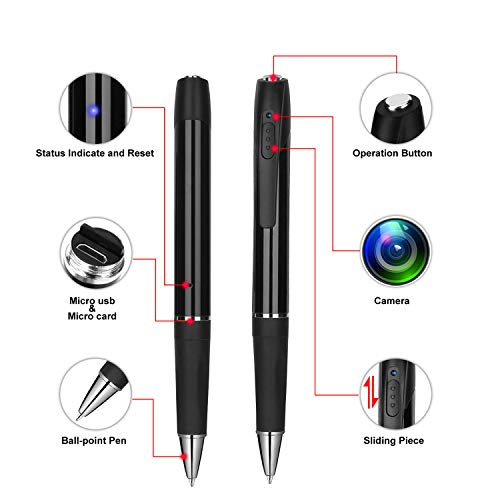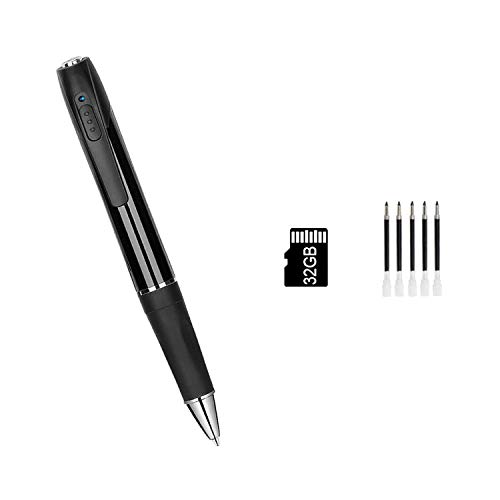 Telecamera nascosta - Spy Pen Camera con autonomia della batteria di 2 ore, HD 1080P portatile Penna per fotocamera portatile Vieni con 32GB TF Card, videocamera wireless con obiettivo nascosto (Nero)
